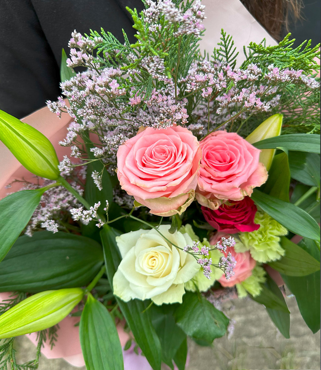 Garden Poise is a vibrant and elegant arrangement that blends soft romance with fresh vitality. With its peachy roses, creamy whites, and hints of lively green, this bouquet embodies balance — perfect for celebrating new beginnings, expressing admiration, or brightening someone’s day with refined charm.
